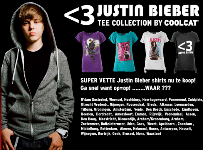 hoi dit gaat weer over de coolcat justin bieber heeft ook in de kledinglijn gezeten van coolcat ik weet nou niet of het echt oud is heb nu nog maar net gezien hoor haha hier een paar foto s maar kon er niet zoveel krijgen